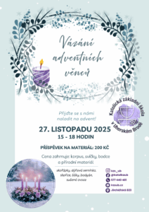 Přijďte načerpat adventní atmosféru a vyrobit si věnec. Srdečně zveme na vázání věnců.