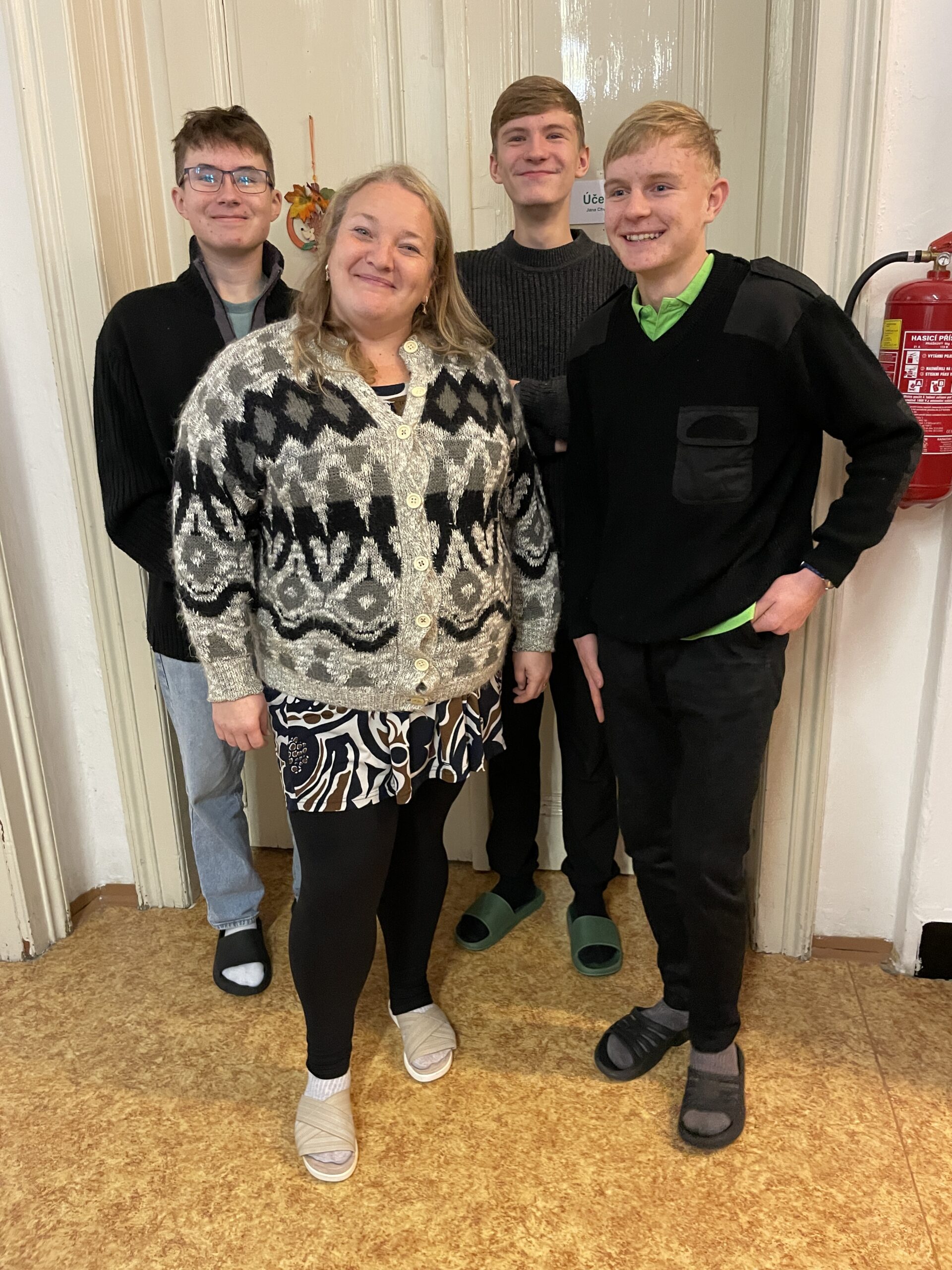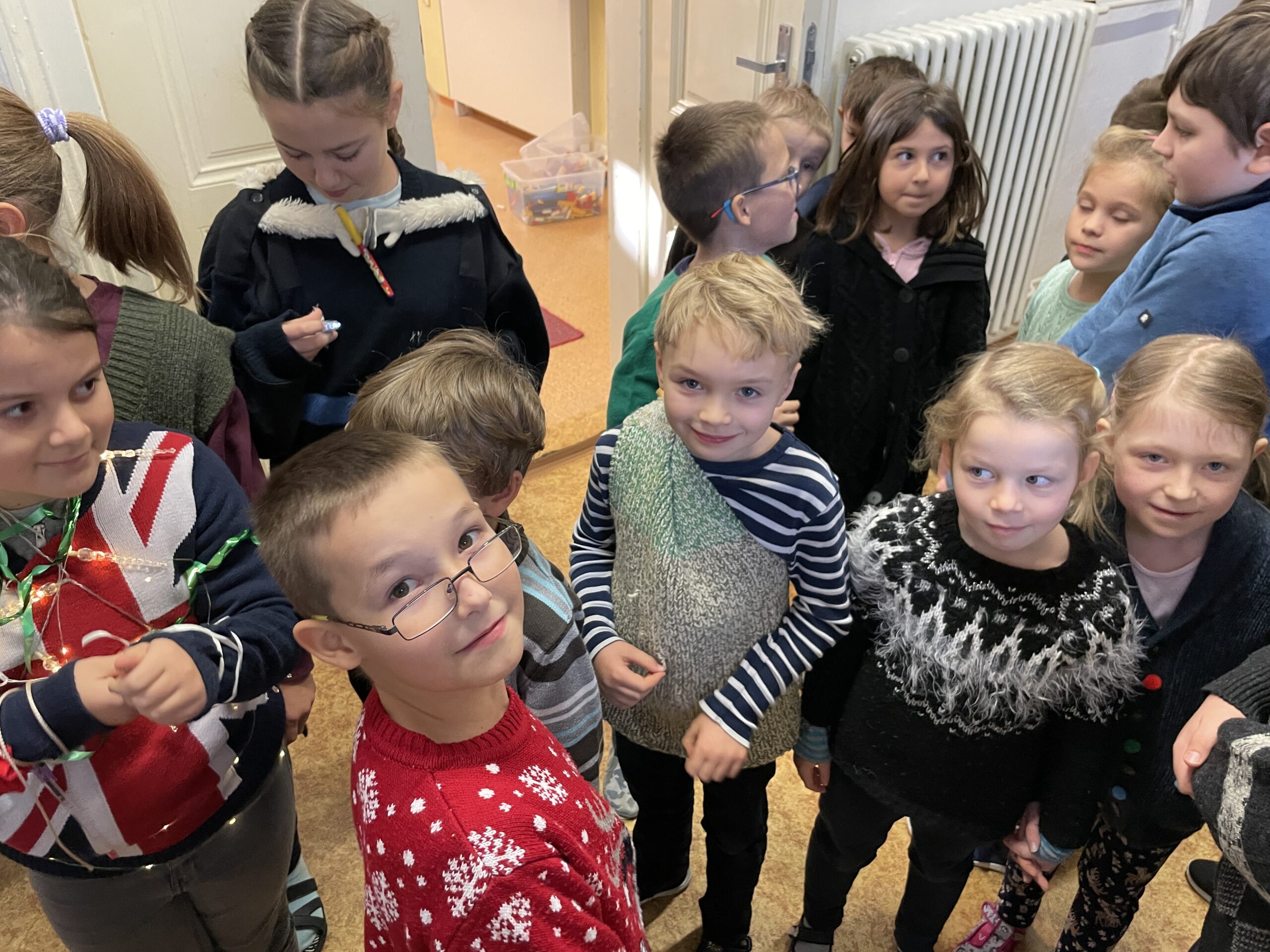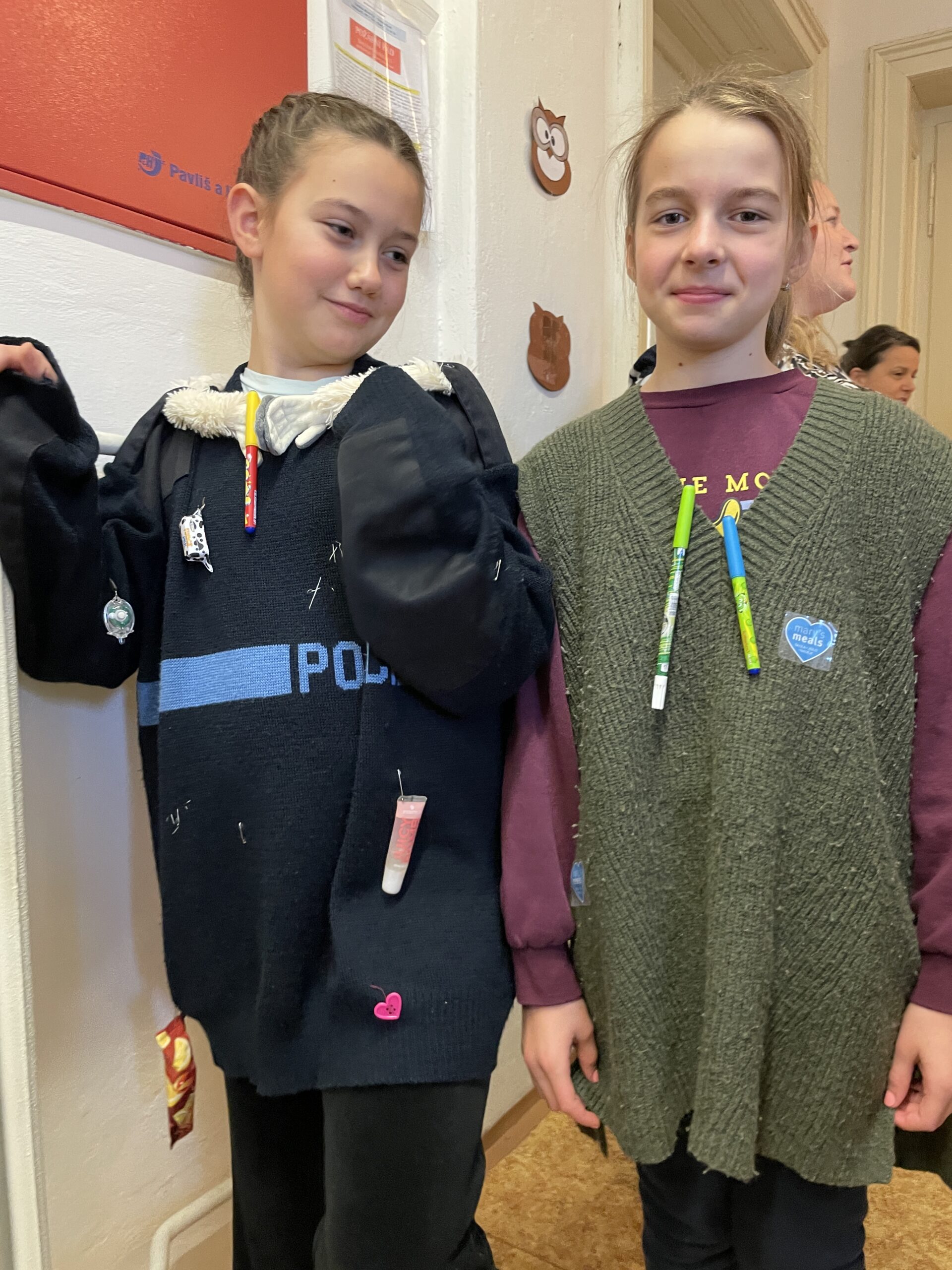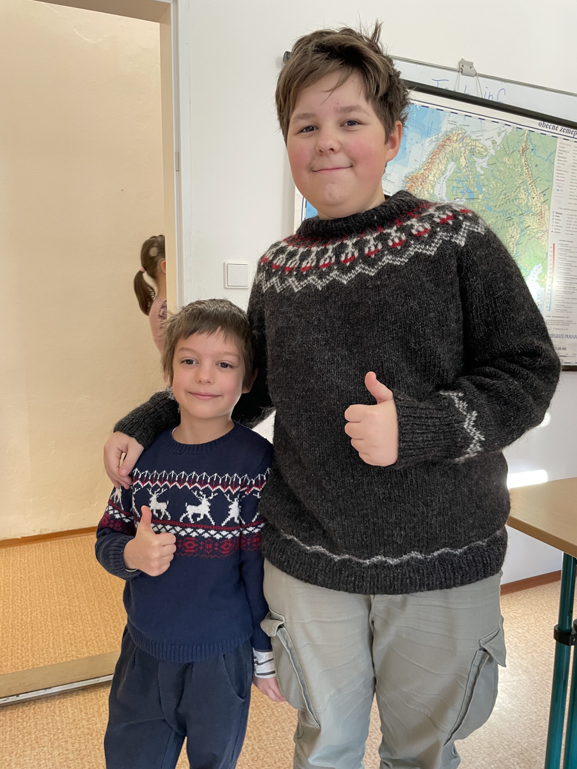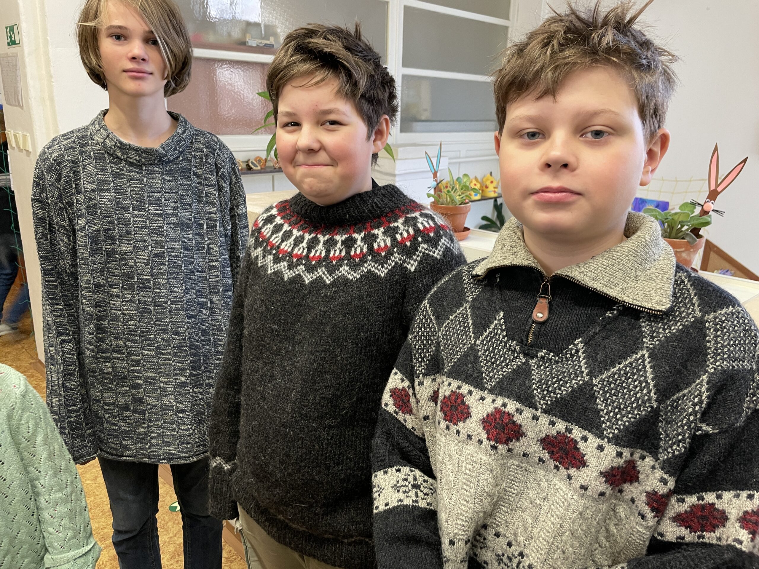 Naši „osvetrovaní“ se během velké přestávky posilnili kyselými rybičkami a pak předvedli své úžasné pletené hrůzostrašnosti na chodbě v horním patře. Skvělá nálada a spousta smíchu!