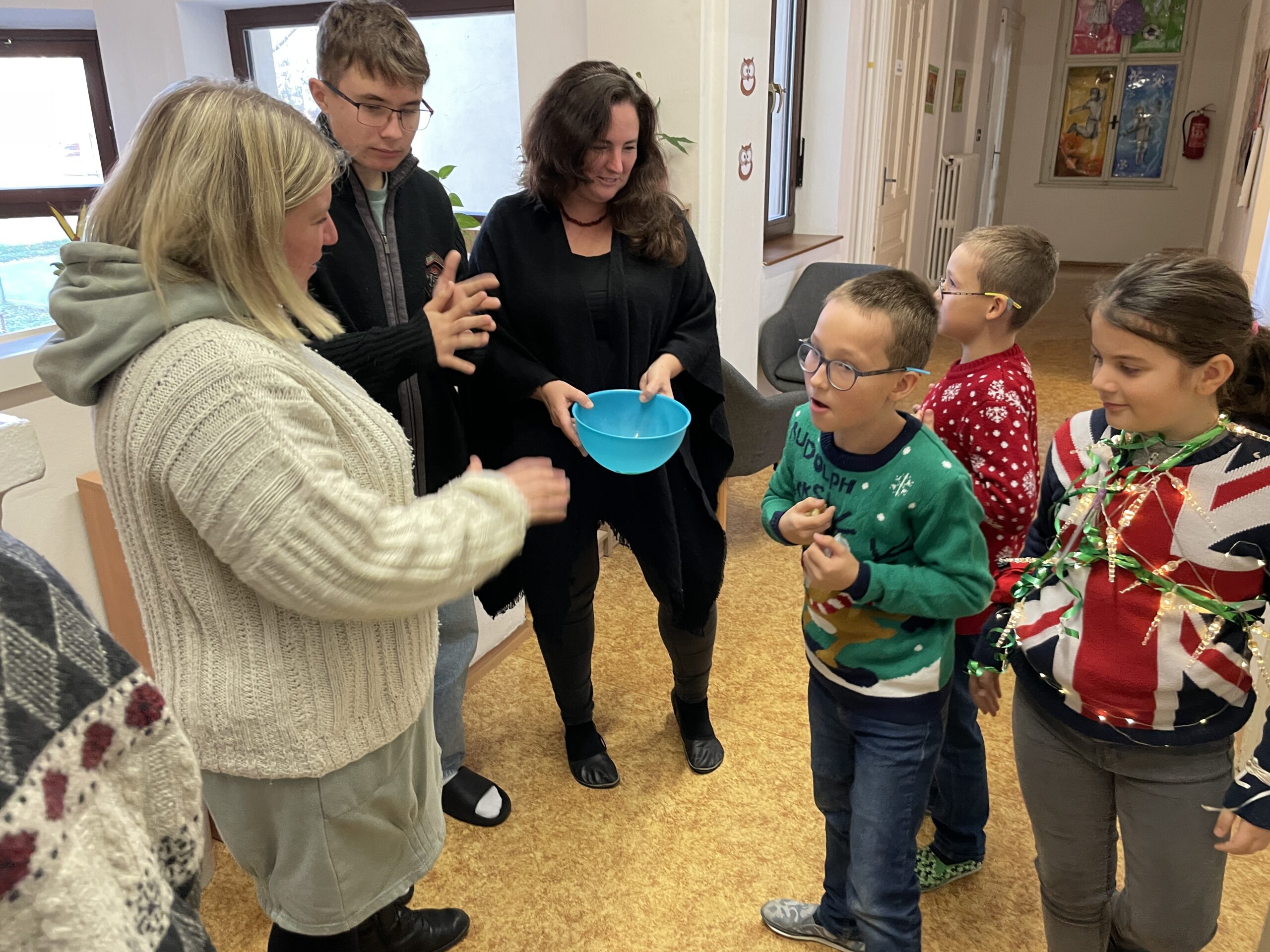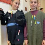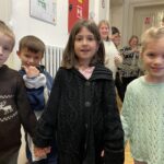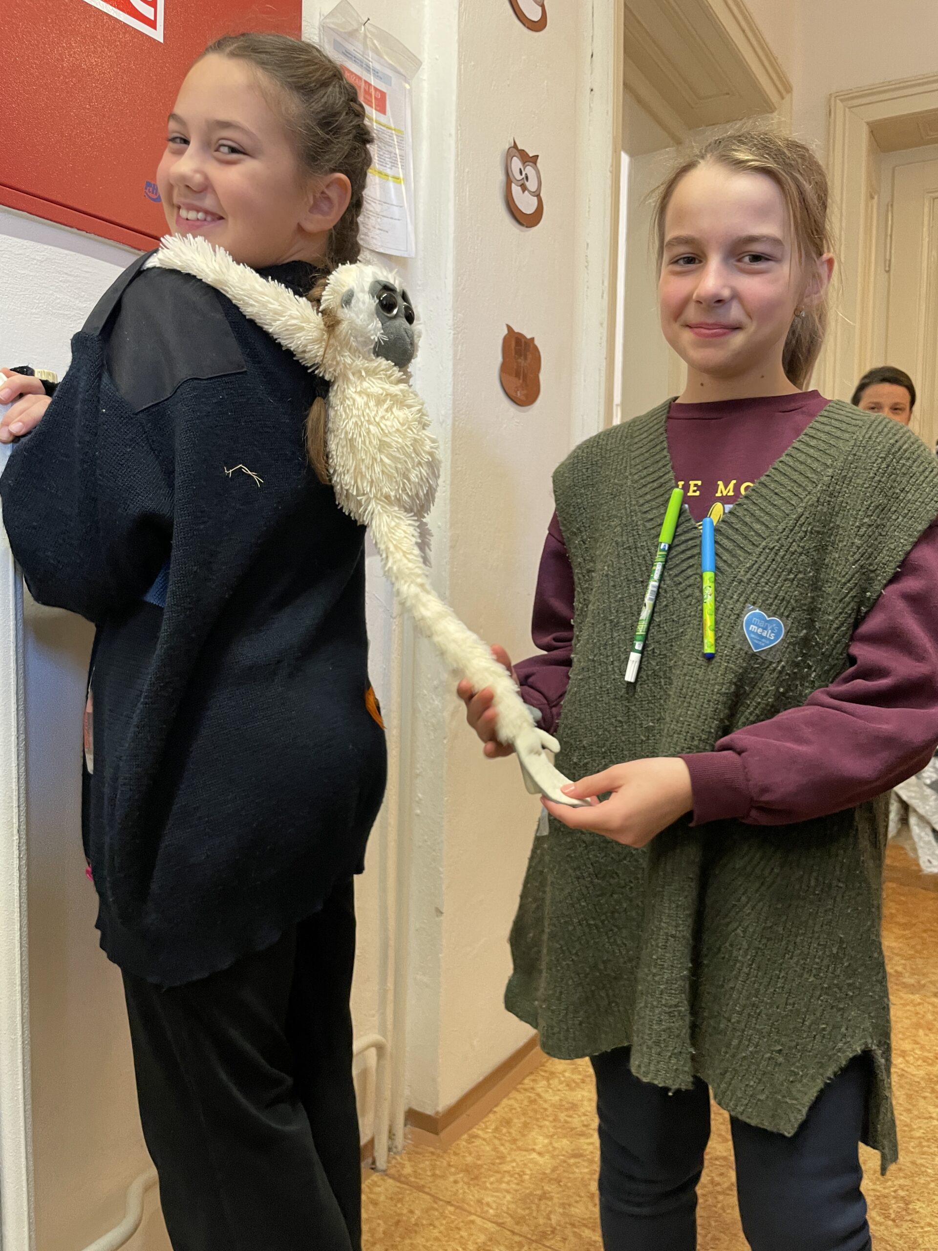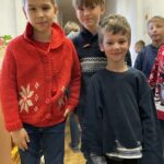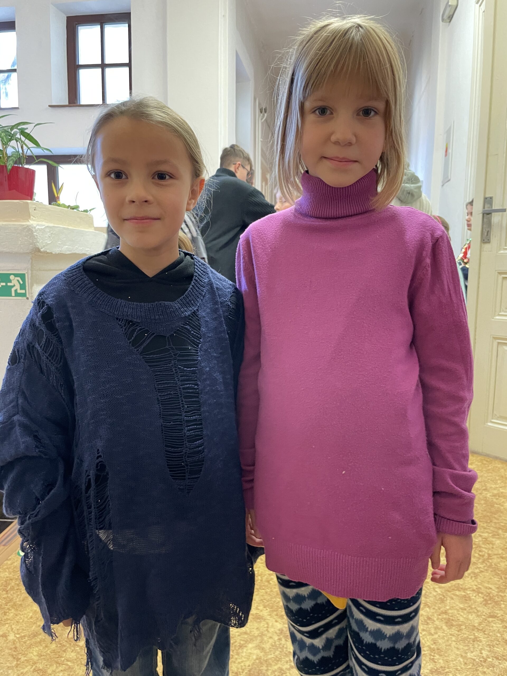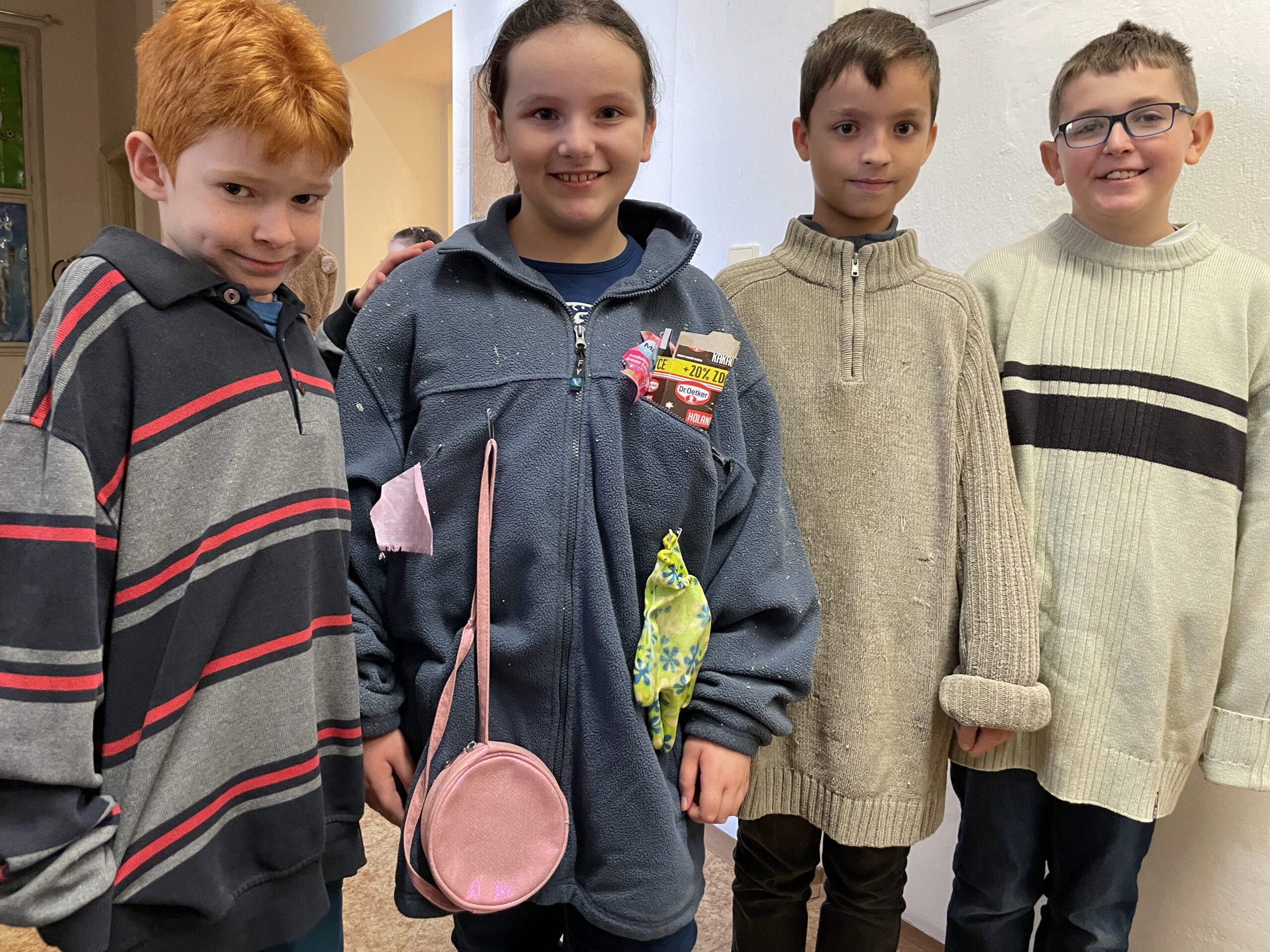 Naši „osvetrovaní“ se během velké přestávky posilnili kyselými rybičkami a pak předvedli své úžasné pletené hrůzostrašnosti na chodbě v horním patře. Skvělá nálada a spousta smíchu!