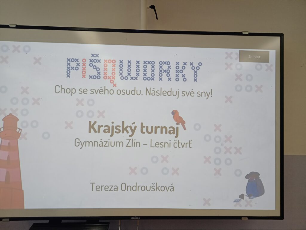 Dne 24. listopadu ti nejlepší z oblastních turnajů piškvorek mezi sebou změřili své síly ve Zlíně, na Gymnáziu Lesní čtvrť. Naši borci ve složení Josef Fiksel, Martin Hložek, Filip Šmerda se ze 16 týmů umístili na krásném 5. místě. Velká gratulace a poděkování za reprezentaci naší školy ![]()