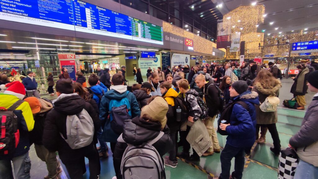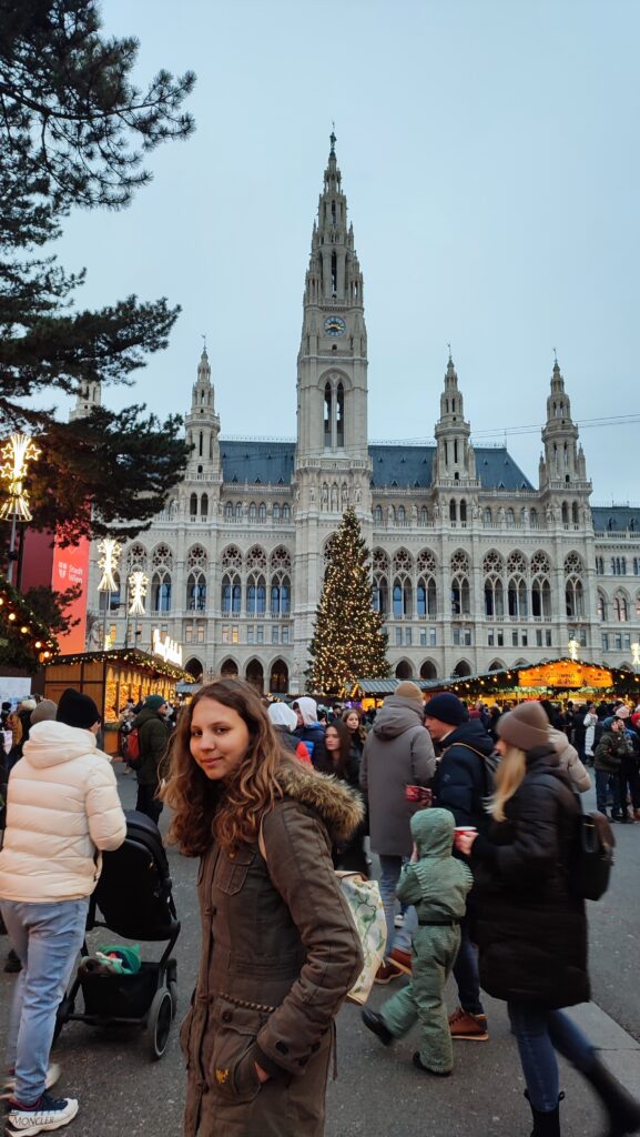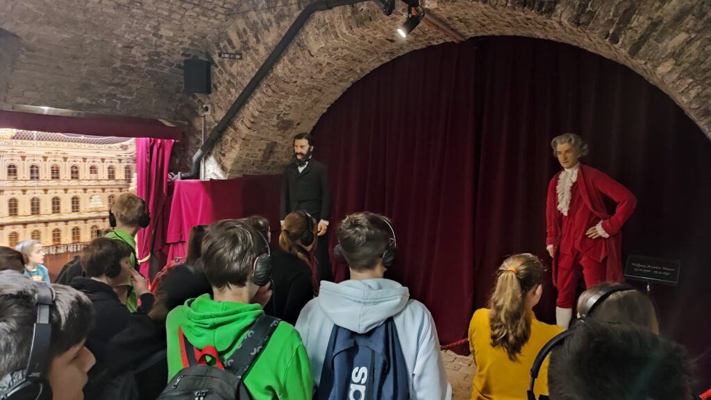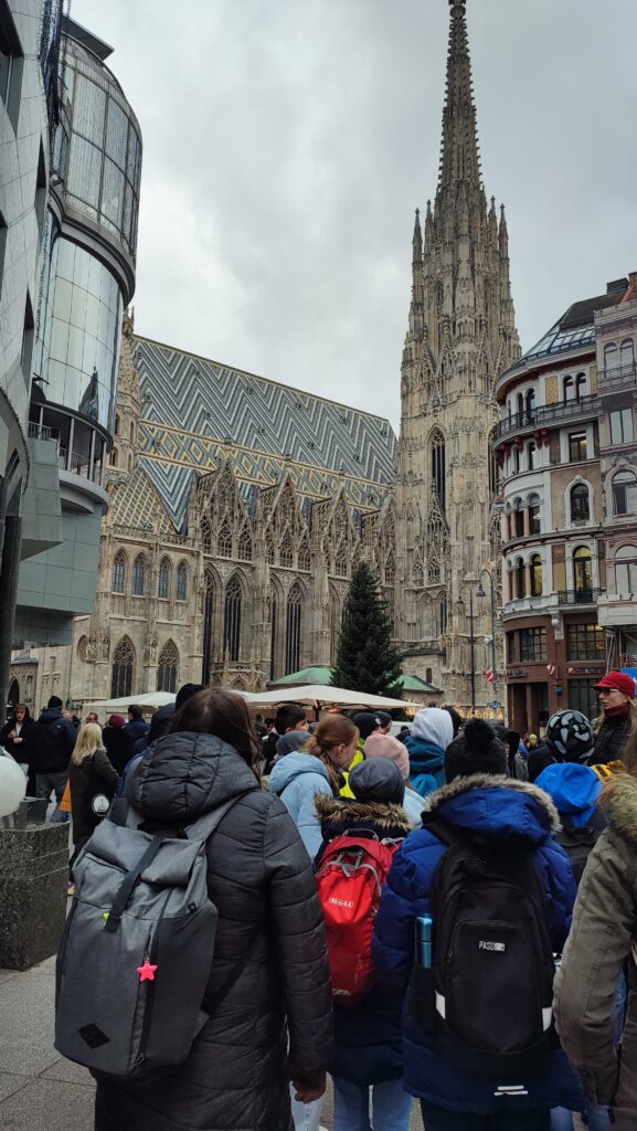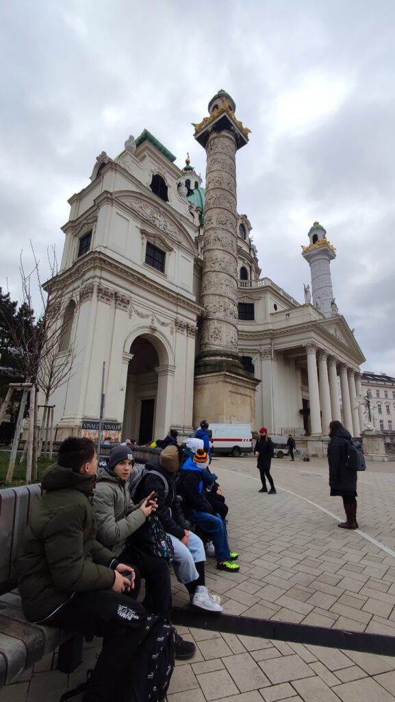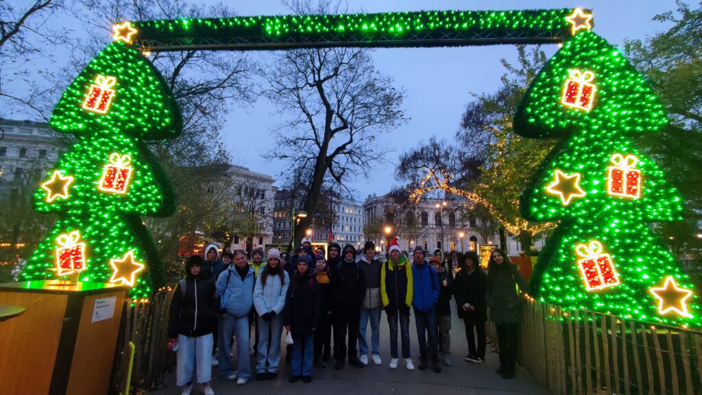 Děkujeme paní učitelce Marušce Lhotové, která nám připravila super program. Kromě tradiční procházky kolem Belvederu, Karlskirche, Marie Terezie Platz, přes Hofburg, římské vykopávky, Staatsoper, po Radnici s adventními trhy nás čekal i zážitek v podobě návštěvy muzea Time travel Vienna. Tam jsme naprosto skvělým a zábavným způsobem (5D kino, VR brýle, animatronické voskové figuríny, multimediální show aj…) poznali vídeňskou historii.